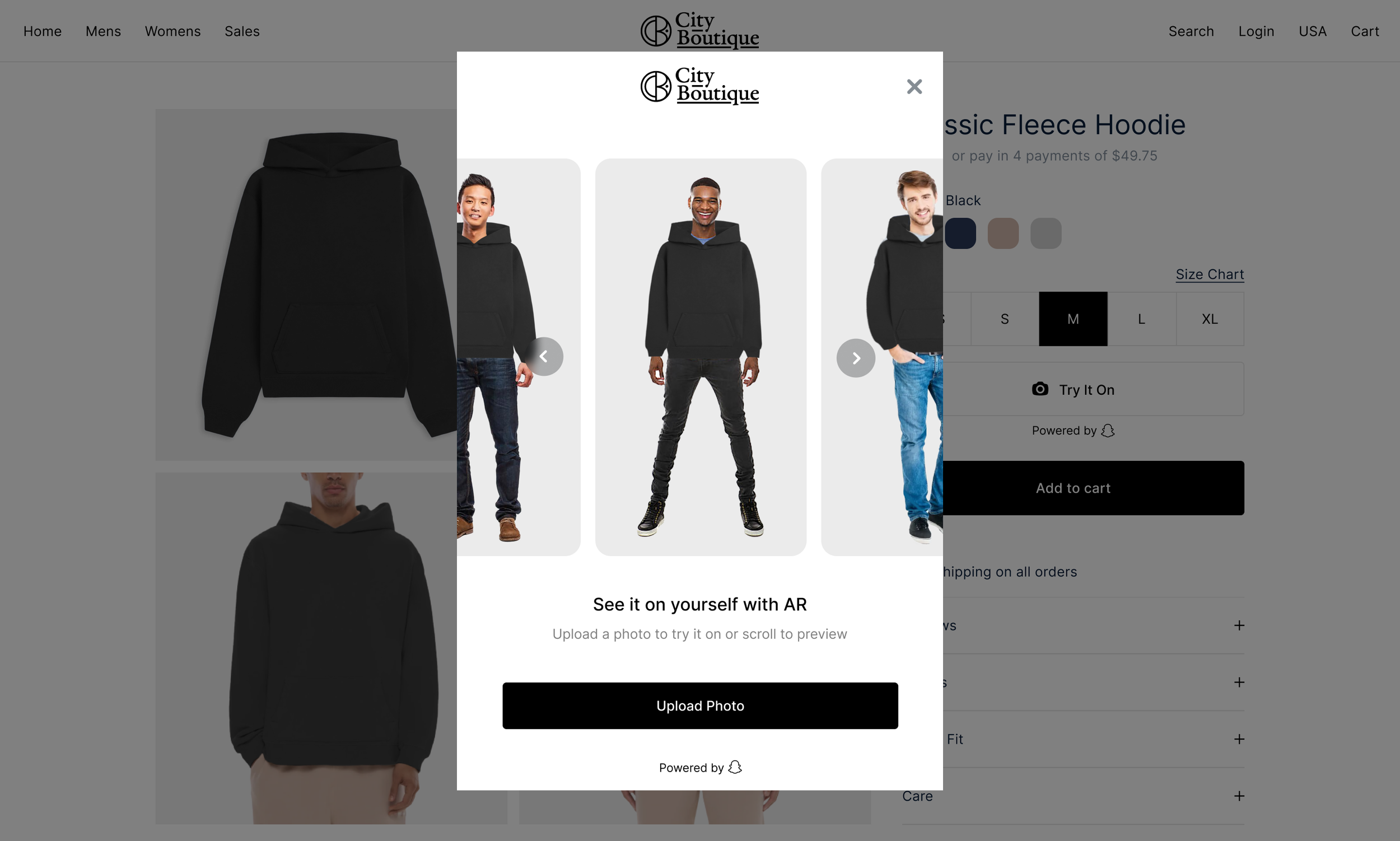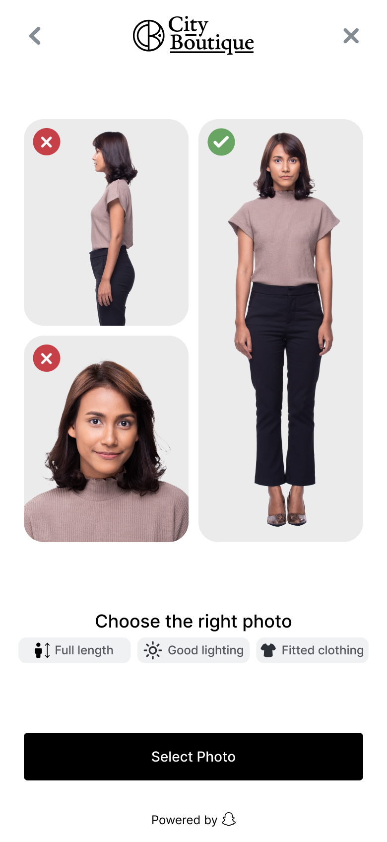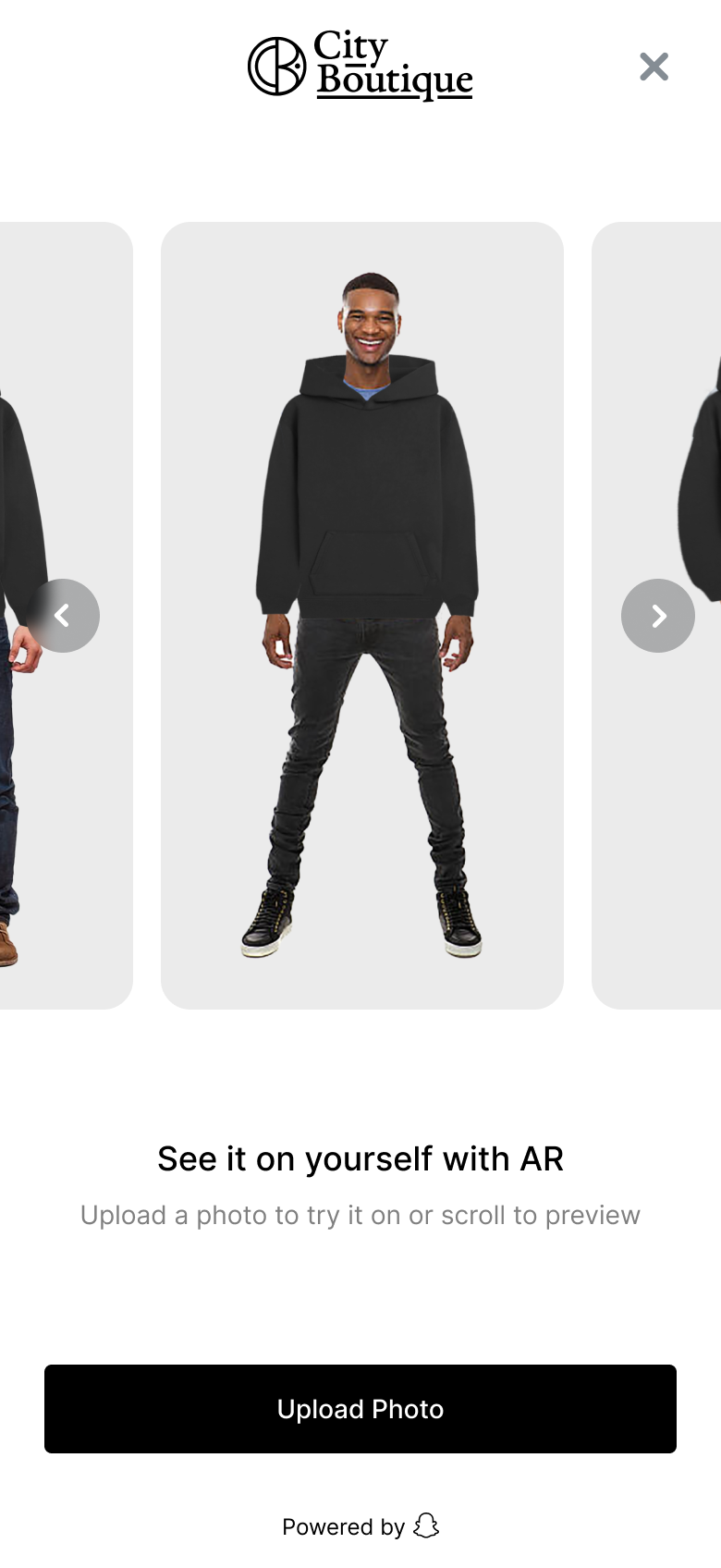 Image Try-On explored full body image upload product try-ons. The feature allowed shoppers to upload a photo or select from avatar models to visualize how garments looked in context, directly on their own image.
