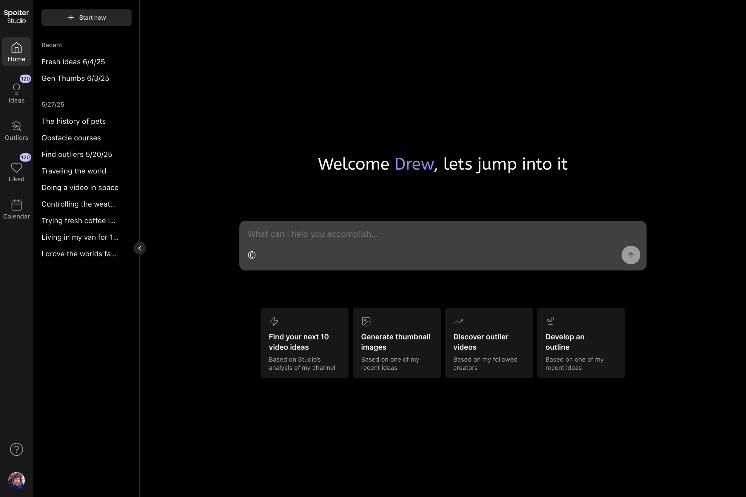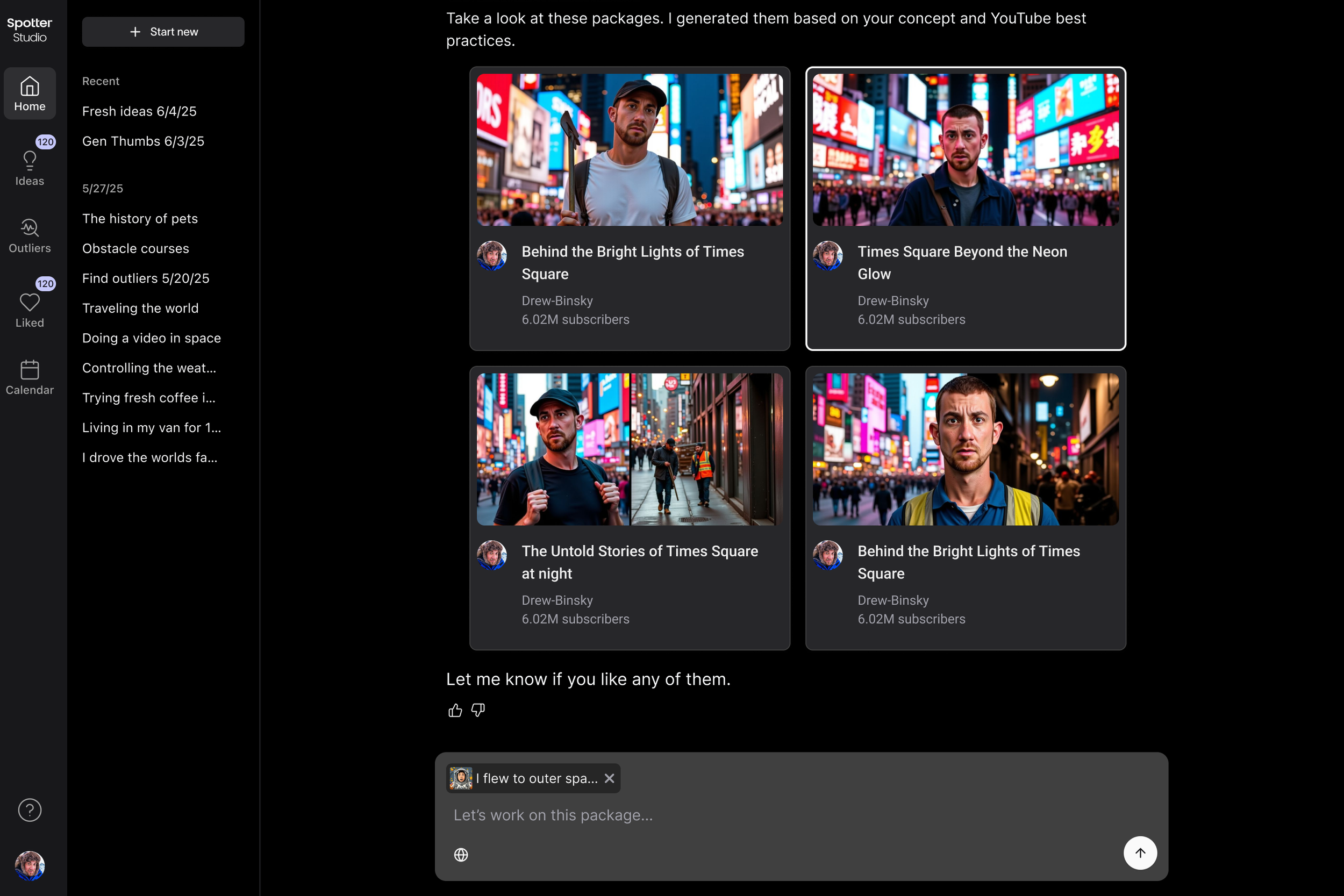 Spotter Studio is an AI platform designed to help YouTube creators ideate, research, and plan high-performing videos. Developed in close partnership with creators, the platform combines brainstorming tools with workflows that generate personalized video ideas and content according to each creator’s unique style and likeness. Studio empowers creators to move from inspiration to execution faster, transforming the way ideas develop.